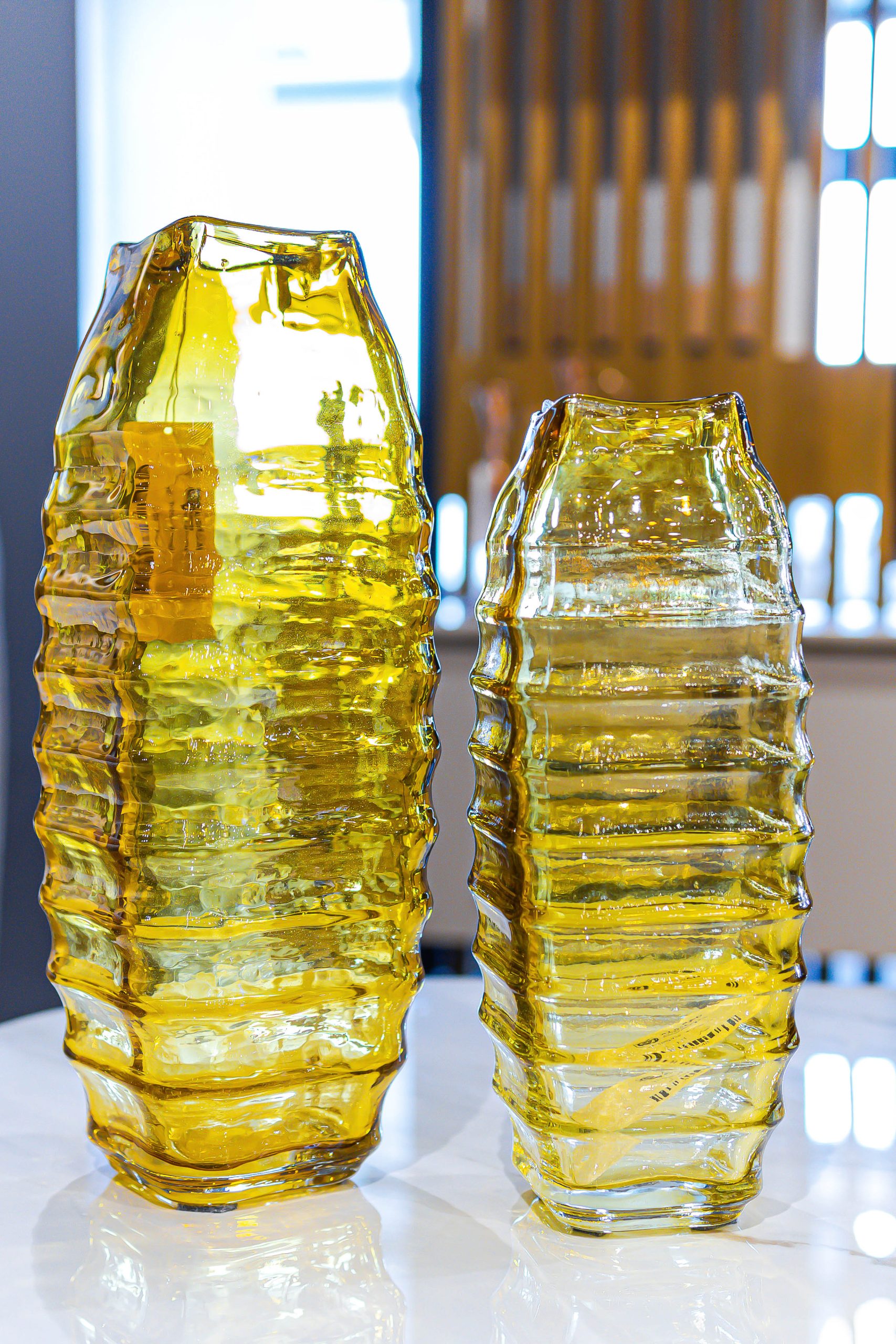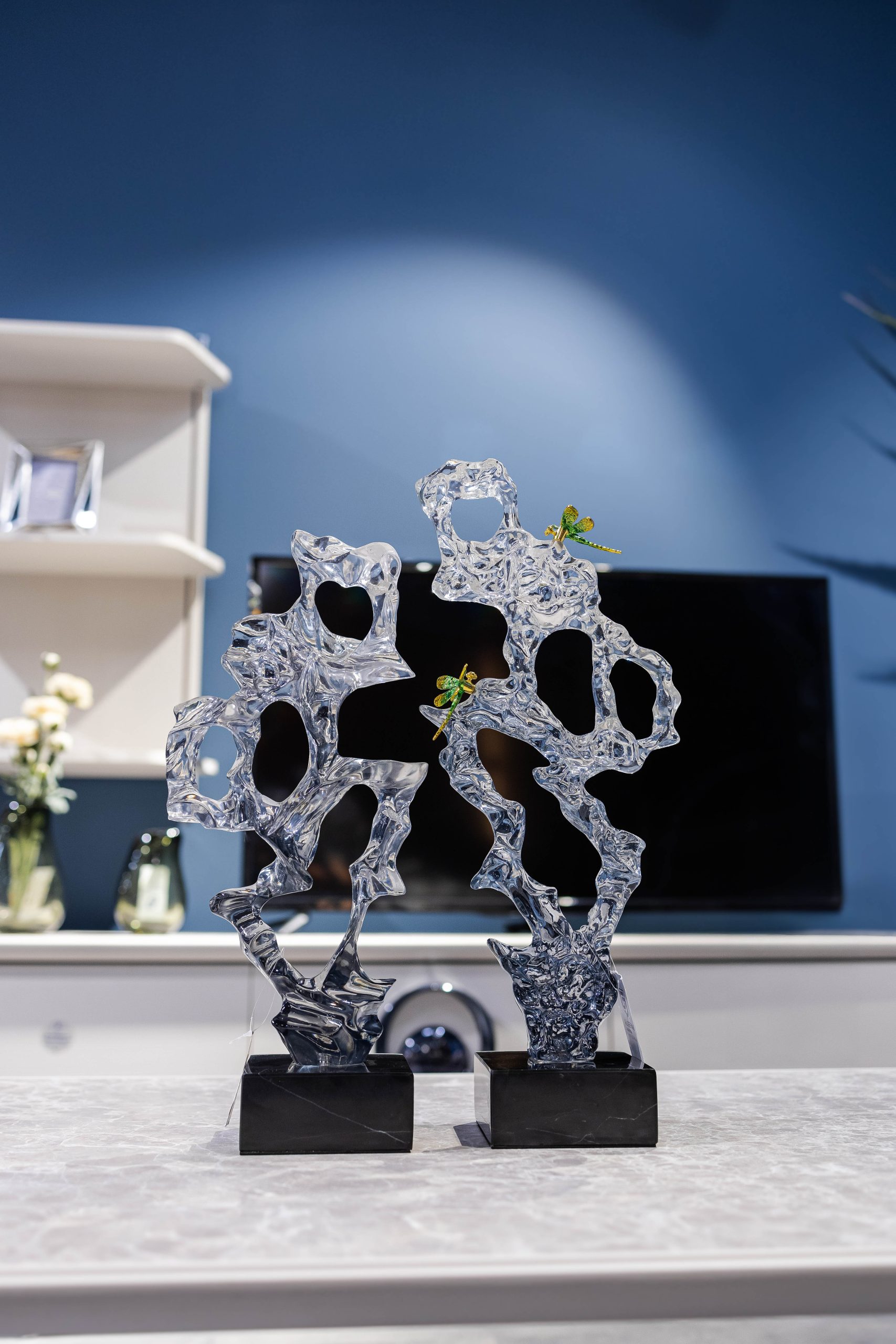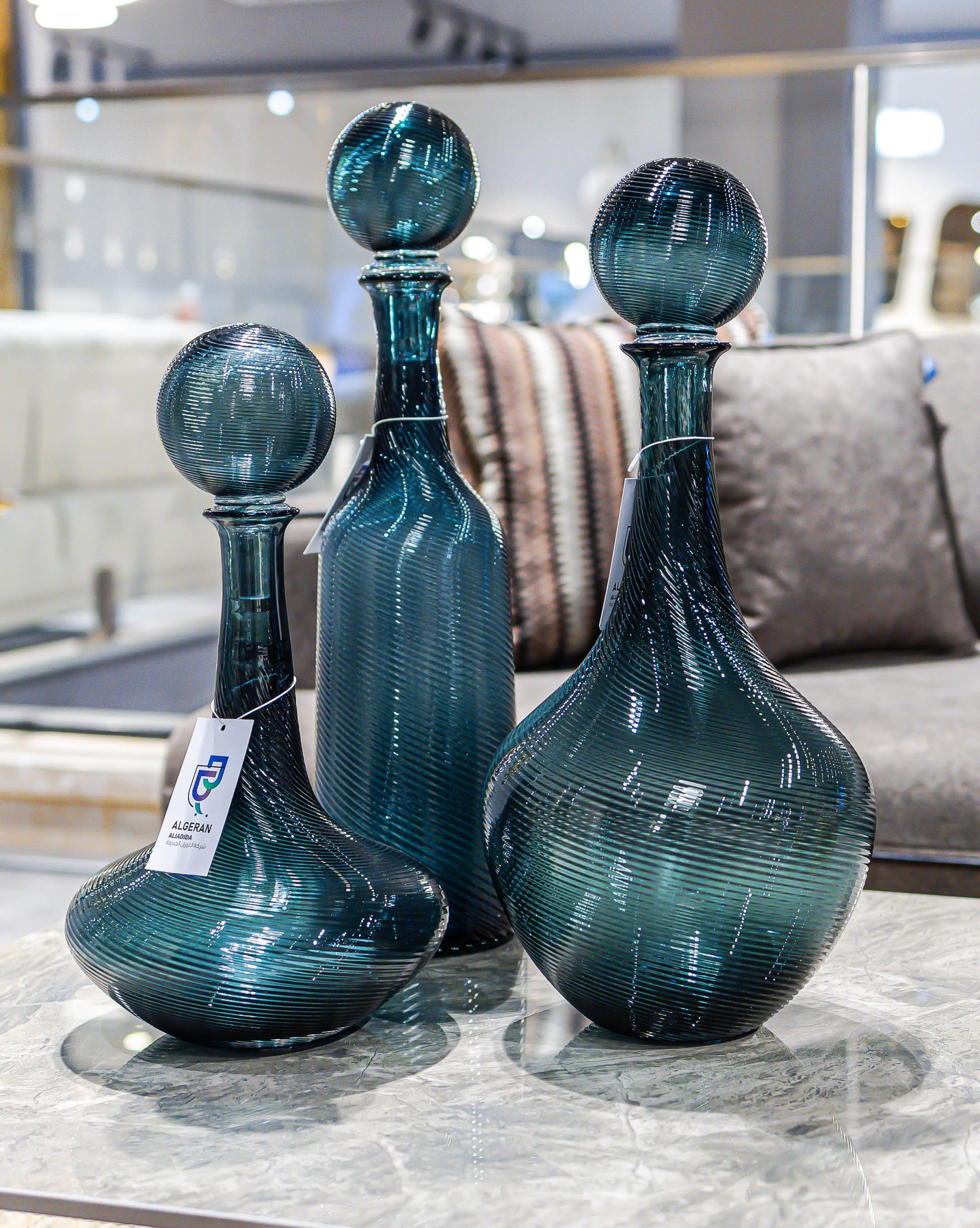 إكسسوارات وتحف زجاجية بتصاميم أنيقة ولمسات فنية تعكس الضوء وتمنح المكان إشراقًا وجمالًا خاصًا. مثالية للتزيين وإضافة إحساس بالفخامة والبساطة في آنٍ واحد.